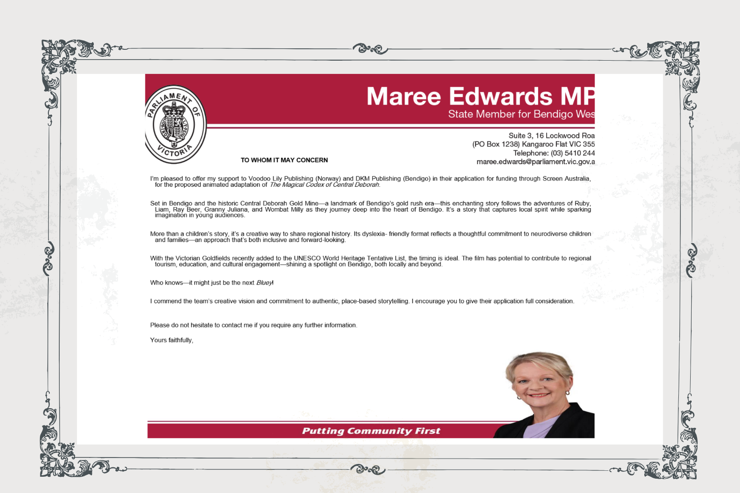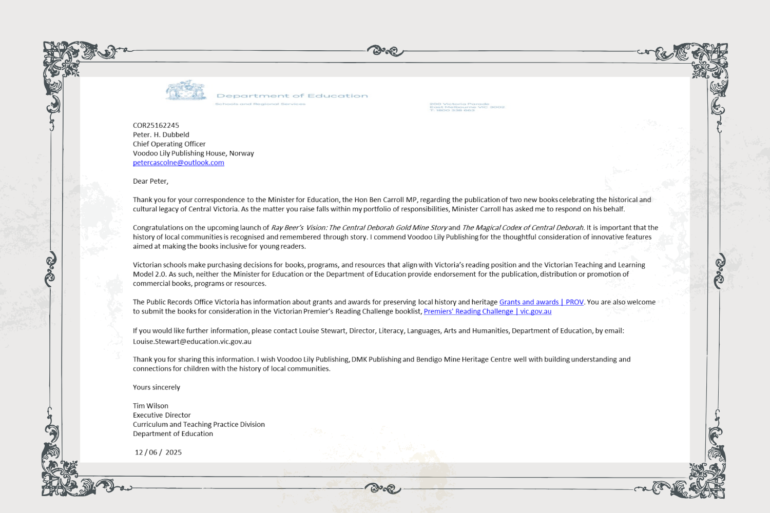 The Magical Codex of Central Deborah is a richly illustrated children’s adventure that brings Bendigo’s golden history to life through magic, mystery, and heart. When two curious children, Ruby and Liam, discover a hidden map during a school trip to the Central Deborah Gold Mine. Designed with neurodiverse readers in mind and endorsed by The Hon. Maree Edwards MP, the book blends historical insight with inclusive storytelling—proving that the greatest treasures aren’t found in rock, but in shared humanity.